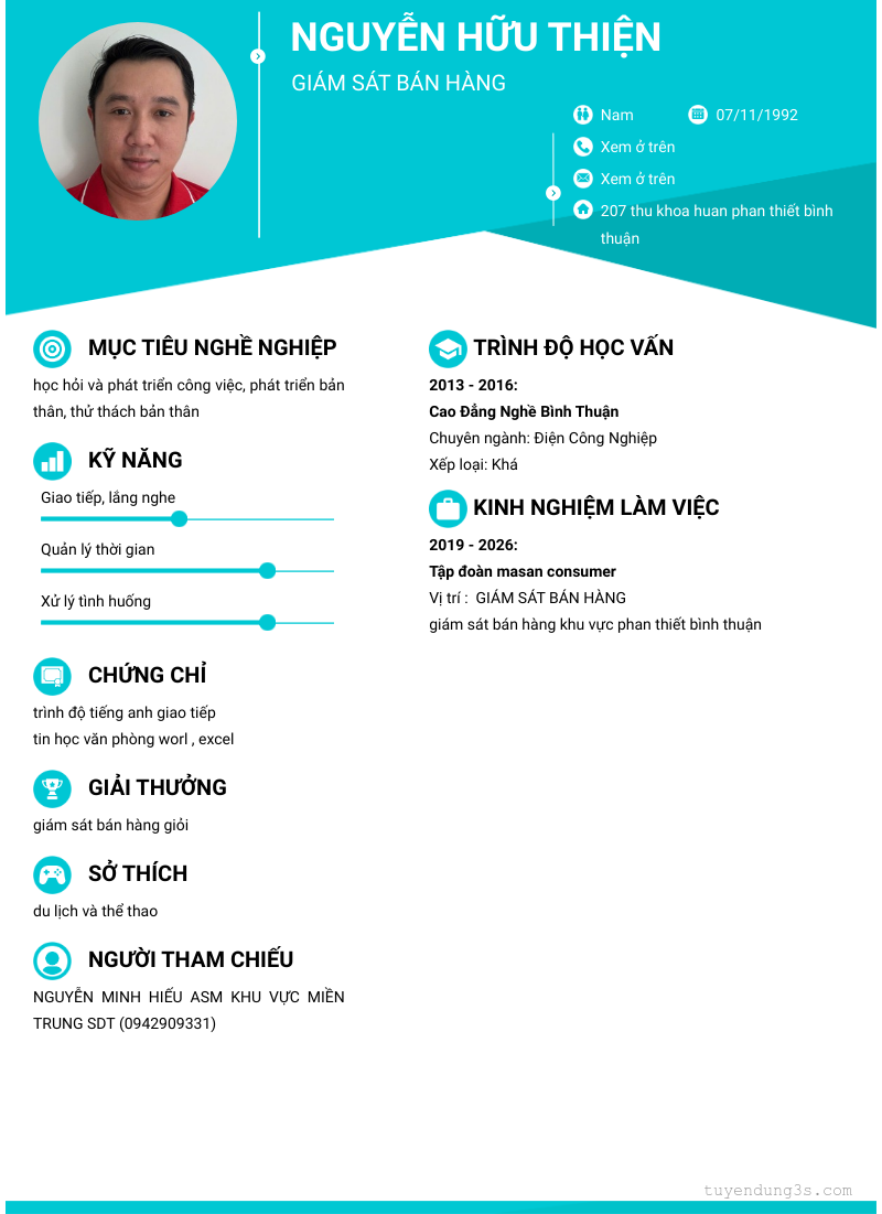 Nơi ở hiện tại: 207 thu khoa huan phan thiết bình thuận