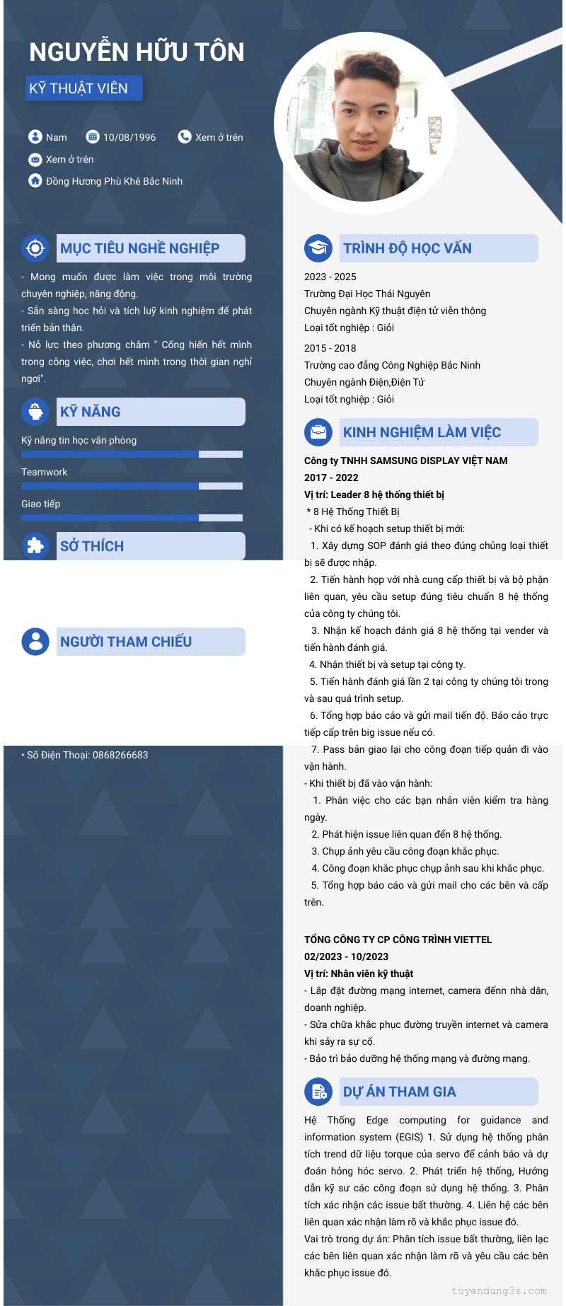 Mở xem thông tin đầy đủ ứng viên Nguyễn Hữu Tôn chỉ với 2 điểm. Ứng viên được cập nhật ngày 21/11/2025