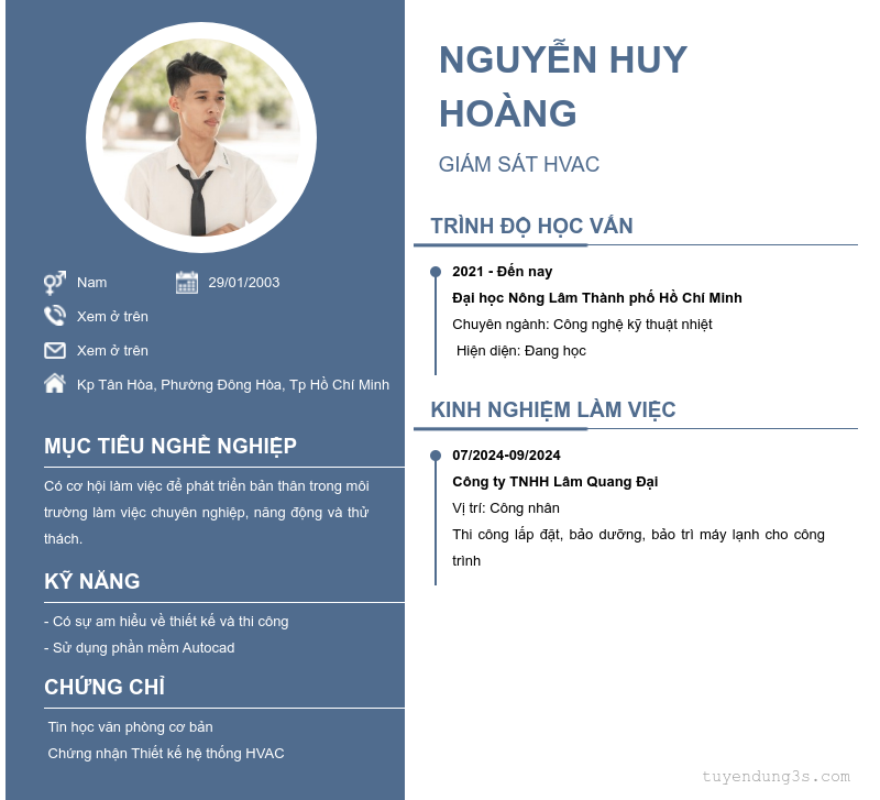 Mở xem thông tin đầy đủ ứng viên Nguyễn Huy Hoàng chỉ với 2 điểm. Ứng viên được cập nhật ngày 10/11/2025