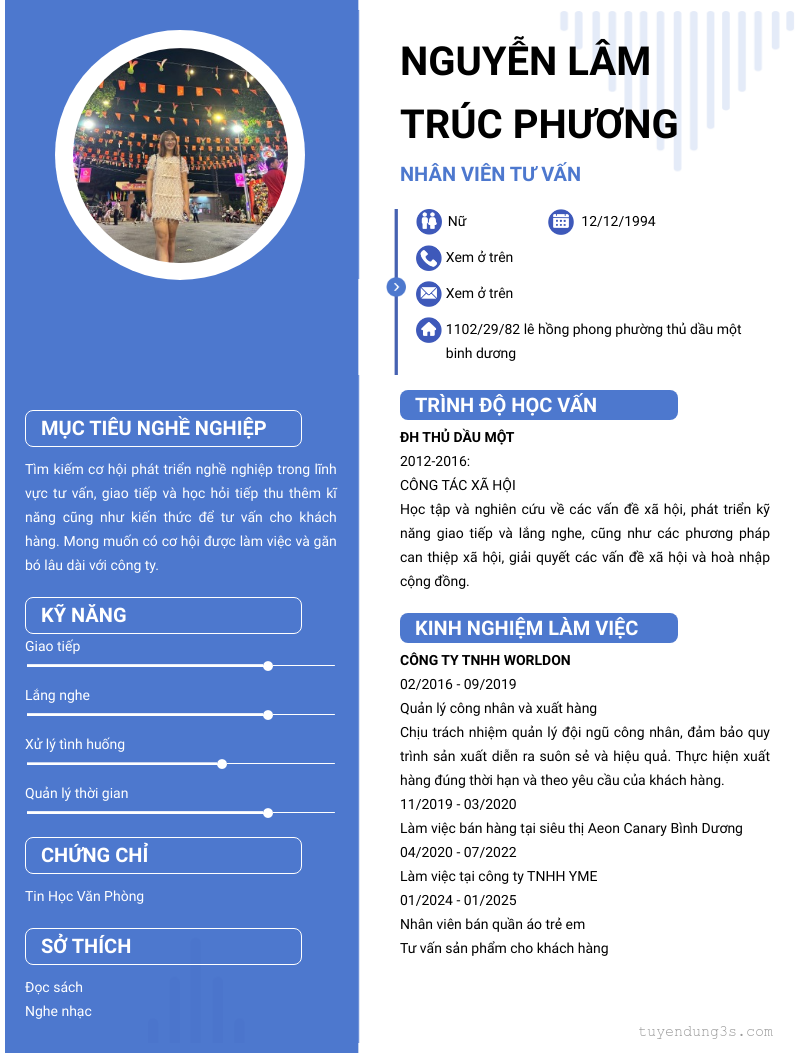 Mở xem thông tin đầy đủ ứng viên Nguyễn Lâm Trúc Phương chỉ với 2 điểm. Ứng viên được cập nhật ngày 10/02/2026