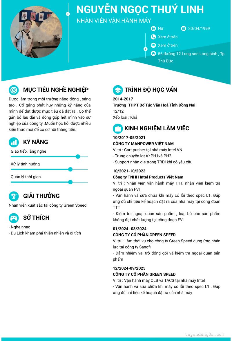 Mở xem thông tin đầy đủ ứng viên NGUYễn Ngọc Thuý Linh chỉ với 2 điểm. Ứng viên được cập nhật ngày 01/09/2025