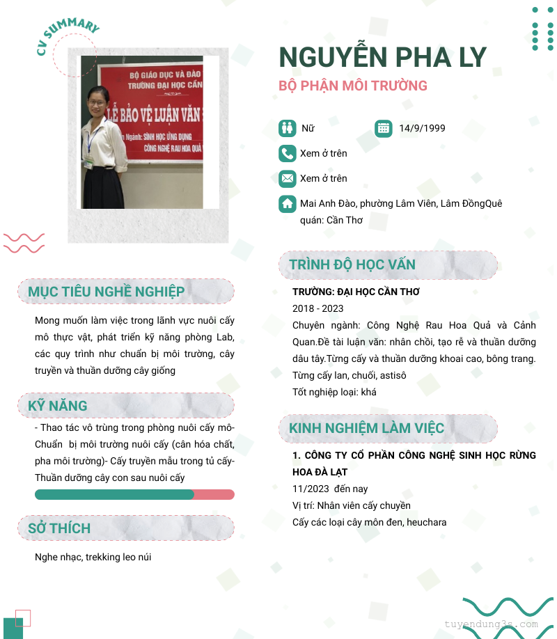 Mở xem thông tin đầy đủ ứng viên NGUYỄN PHA LY chỉ với 2 điểm. Ứng viên được cập nhật ngày 15/03/2026