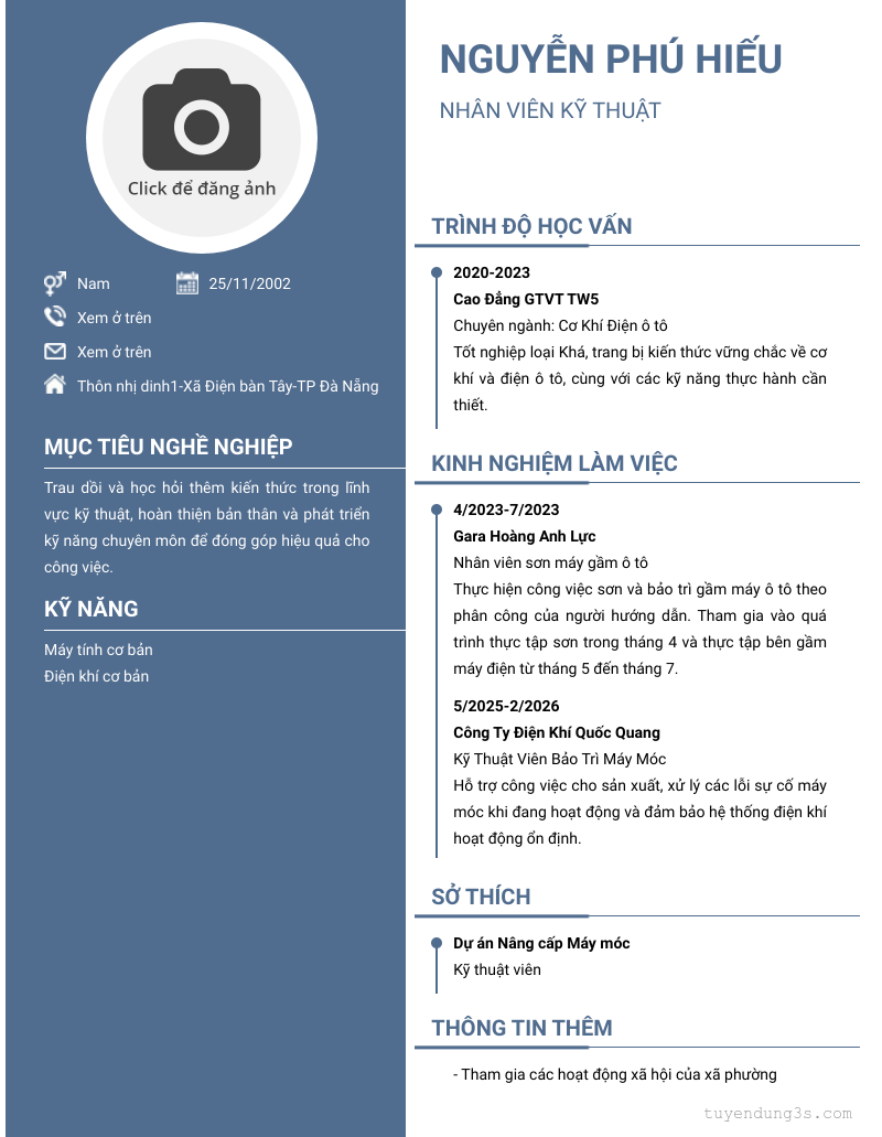 Mở xem thông tin đầy đủ ứng viên Nguyễn Phú HIếu chỉ với 2 điểm. Ứng viên được cập nhật ngày 19/01/2026
