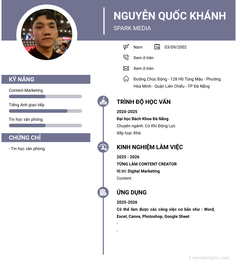 Mở xem thông tin đầy đủ ứng viên NGUYỄN QUỐC KHÁNH chỉ với 2 điểm. Ứng viên được cập nhật ngày 30/03/2026