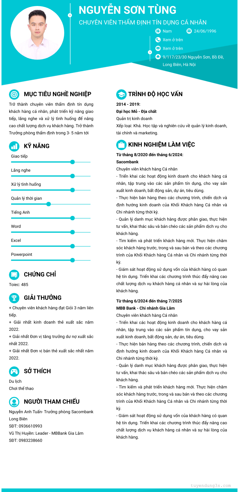 Mở xem thông tin đầy đủ ứng viên NGUYỄN SƠN TÙNG chỉ với 2 điểm. Ứng viên được cập nhật ngày 21/09/2025