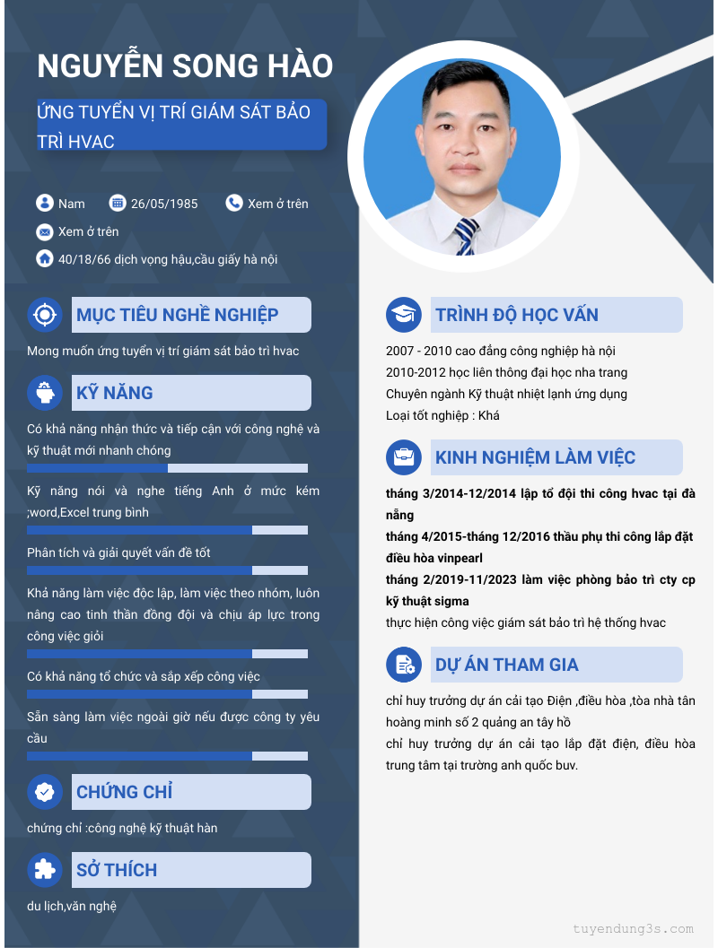 Mở xem thông tin đầy đủ ứng viên Nguyễn Song Hào chỉ với 2 điểm. Ứng viên được cập nhật ngày 24/09/2025