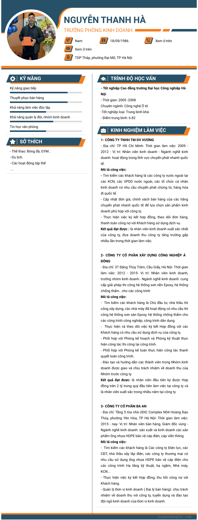 Mở xem thông tin đầy đủ ứng viên NGUYỄN THANH HÀ chỉ với 2 điểm. Ứng viên được cập nhật ngày 08/10/2025