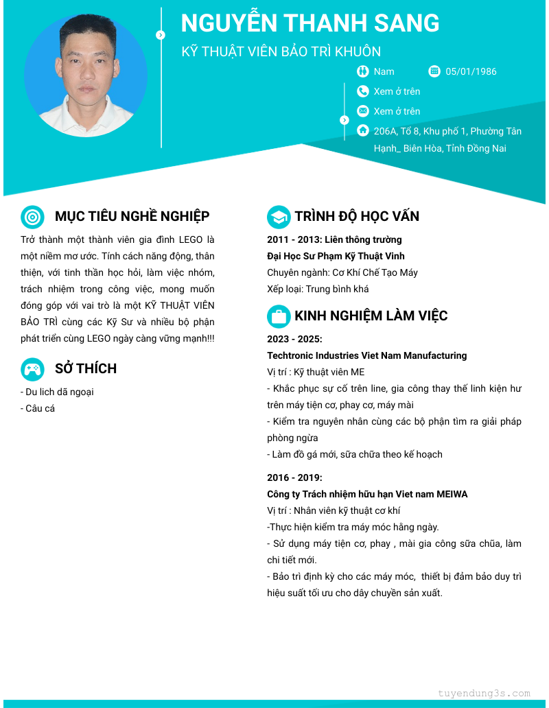 Mở xem thông tin đầy đủ ứng viên NGUYỄN THANH SANG chỉ với 2 điểm. Ứng viên được cập nhật ngày 04/11/2025