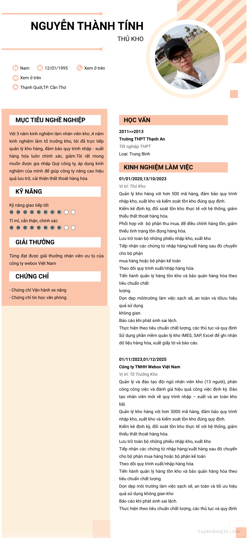 Mở xem thông tin đầy đủ ứng viên Nguyễn Thành Tính chỉ với 2 điểm. Ứng viên được cập nhật ngày 04/12/2025