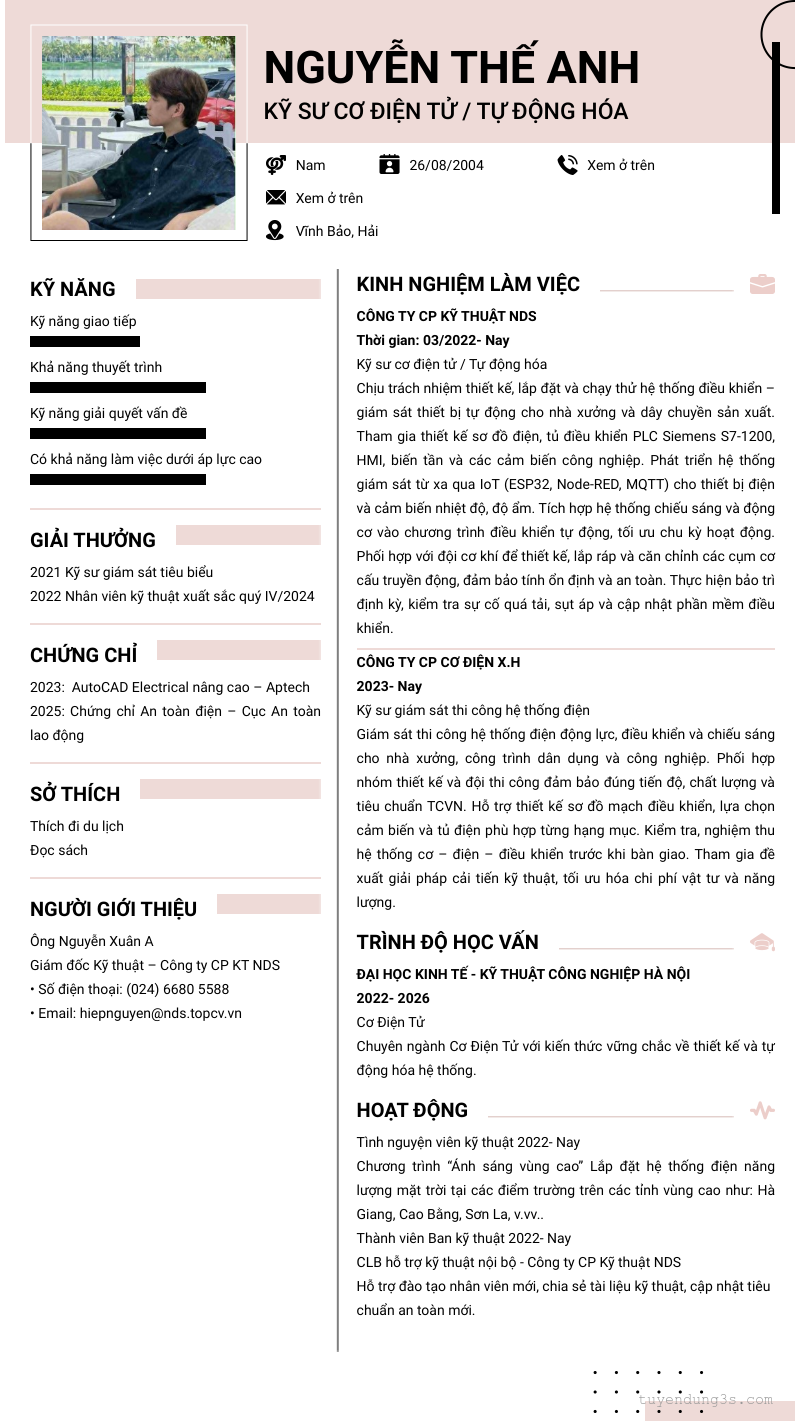 Mở xem thông tin đầy đủ ứng viên Nguyễn Thế Anh chỉ với 2 điểm. Ứng viên được cập nhật ngày 08/10/2025