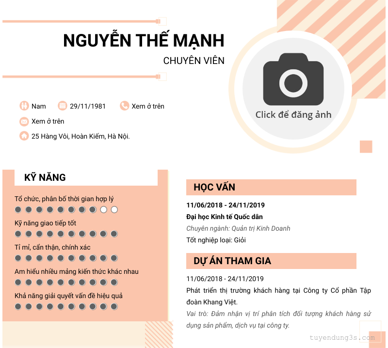 Mở xem thông tin đầy đủ ứng viên NGUYỄN THẾ MẠNH chỉ với 2 điểm. Ứng viên được cập nhật ngày 27/01/2026