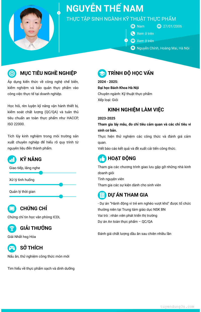 Mở xem thông tin đầy đủ ứng viên Nguyễn Thế Nam chỉ với 2 điểm. Ứng viên được cập nhật ngày 28/10/2025