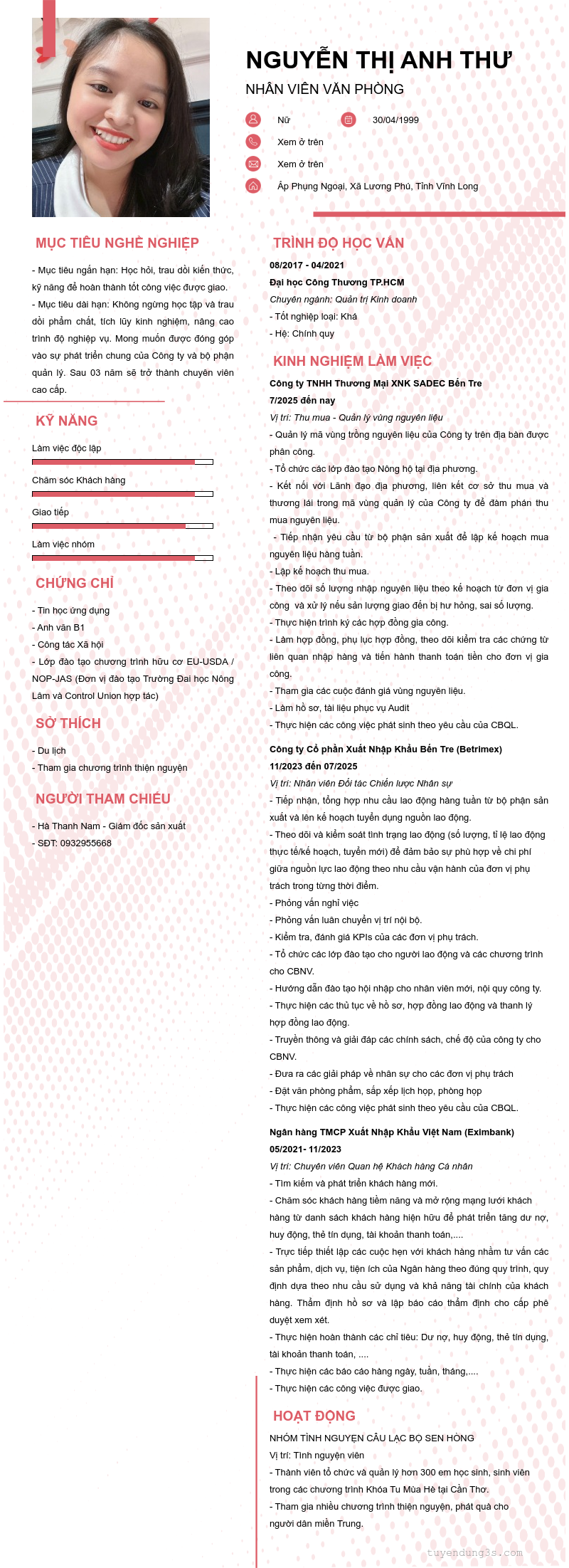 Mở xem thông tin đầy đủ ứng viên NGUYỄN THỊ ANH THƯ chỉ với 2 điểm. Ứng viên được cập nhật ngày 22/10/2025