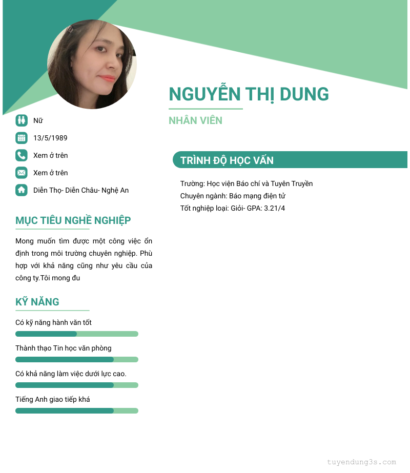Mở xem thông tin đầy đủ ứng viên Nguyễn Thị Dung chỉ với 2 điểm. Ứng viên được cập nhật ngày 05/10/2025