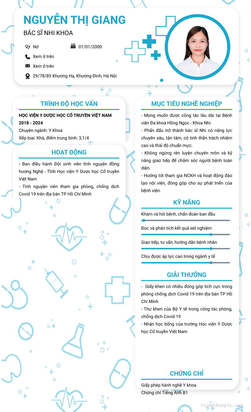 Mở xem thông tin đầy đủ ứng viên Nguyễn Thị Giang chỉ với 2 điểm. Ứng viên được cập nhật ngày 31/10/2025