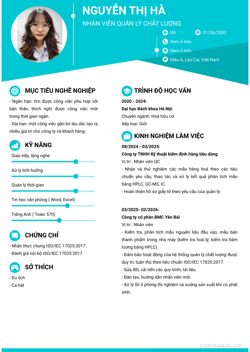 Mở xem thông tin đầy đủ ứng viên Nguyễn Thị Hà chỉ với 2 điểm. Ứng viên được cập nhật ngày 03/02/2026