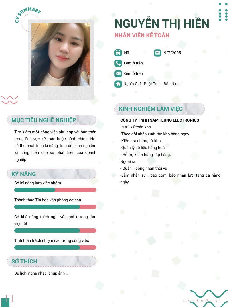 Mở xem thông tin đầy đủ ứng viên Nguyễn Thị Hiền chỉ với 2 điểm. Ứng viên được cập nhật ngày 08/03/2026
