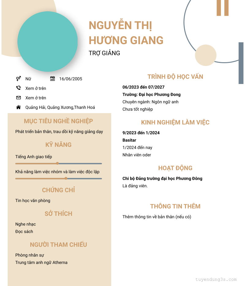 Mở xem thông tin đầy đủ ứng viên Nguyễn Thị Hương Giang chỉ với 2 điểm. Ứng viên được cập nhật ngày 06/03/2024