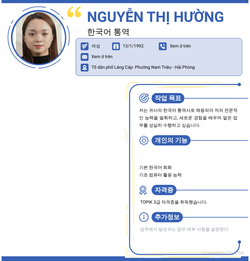 Mở xem thông tin đầy đủ ứng viên NGUYễn Thị HƯờng chỉ với 2 điểm. Ứng viên được cập nhật ngày 02/11/2025