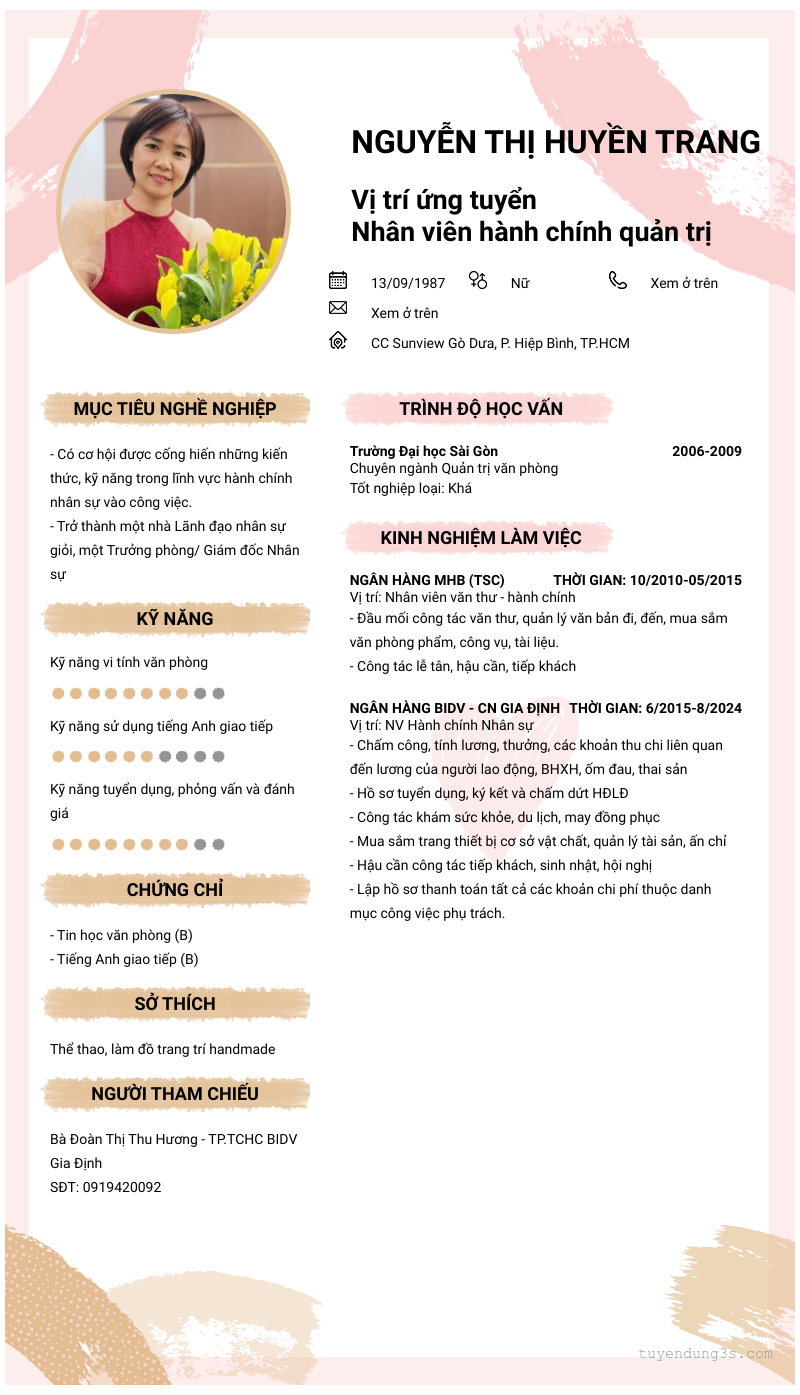 Mở xem thông tin đầy đủ ứng viên NGUYỄN THỊ HUYỀN TRANG chỉ với 2 điểm. Ứng viên được cập nhật ngày 28/09/2025