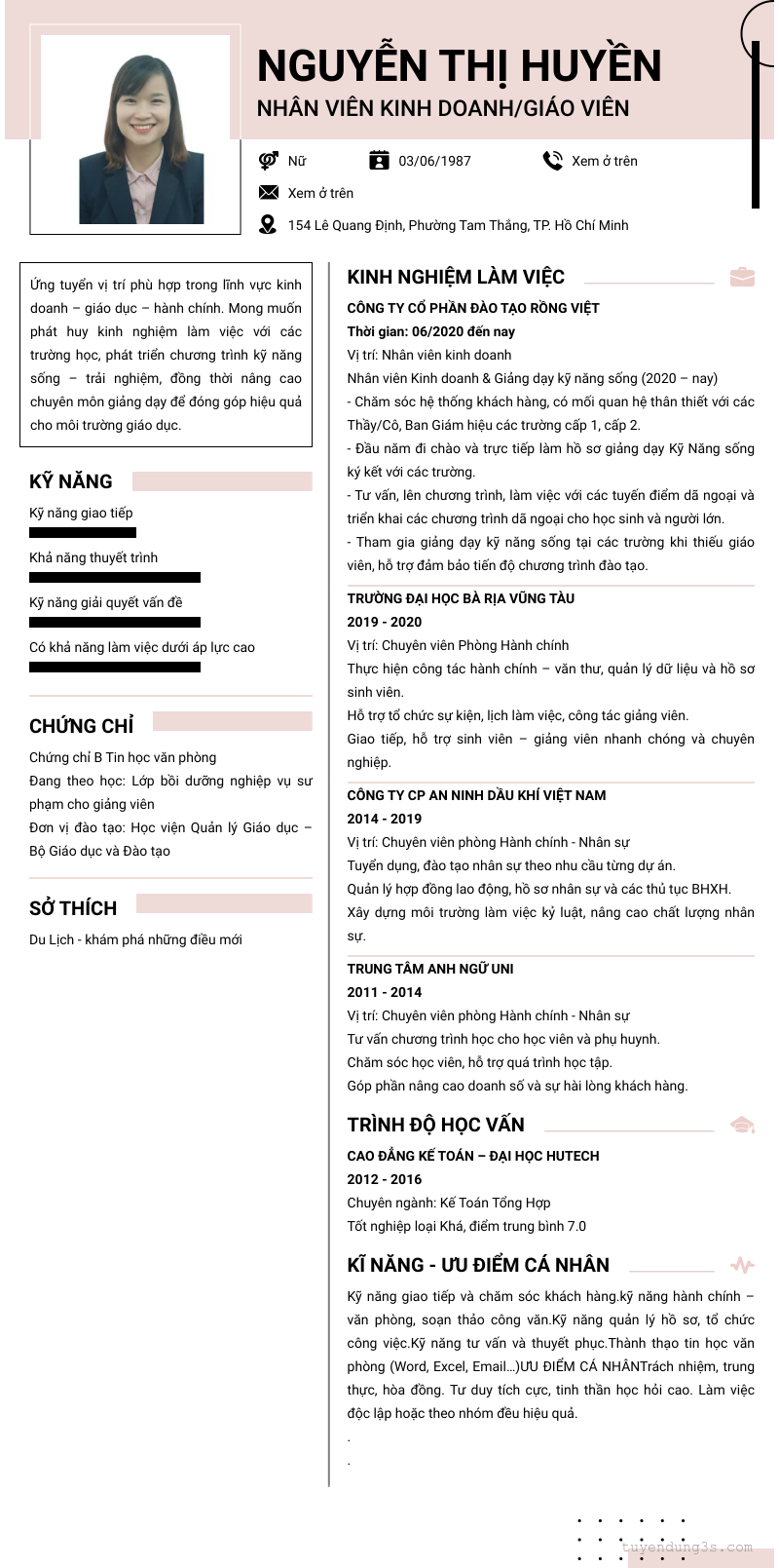 Mở xem thông tin đầy đủ ứng viên NGUYỄN THỊ HUYỀN chỉ với 2 điểm. Ứng viên được cập nhật ngày 08/12/2025
