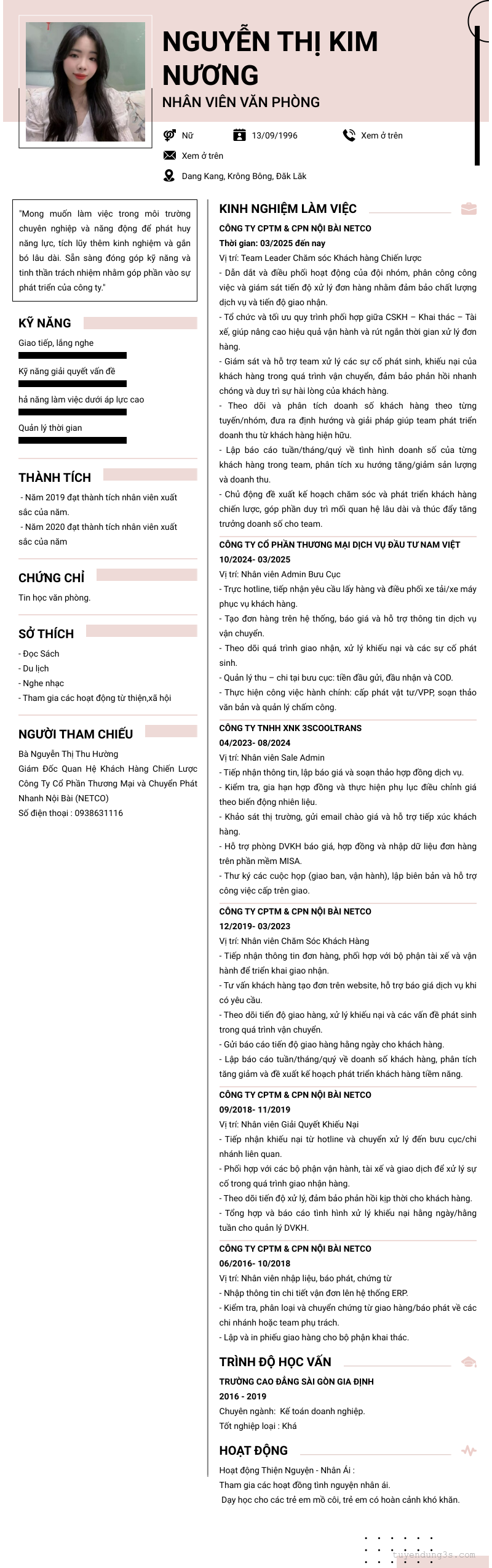 Mở xem thông tin đầy đủ ứng viên Nguyễn Thị Kim Nương chỉ với 2 điểm. Ứng viên được cập nhật ngày 08/03/2026