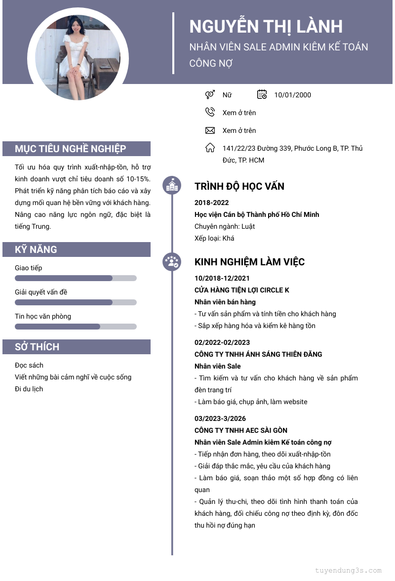 Mở xem thông tin đầy đủ ứng viên NGUYỄN THỊ LÀNH chỉ với 2 điểm. Ứng viên được cập nhật ngày 23/03/2026