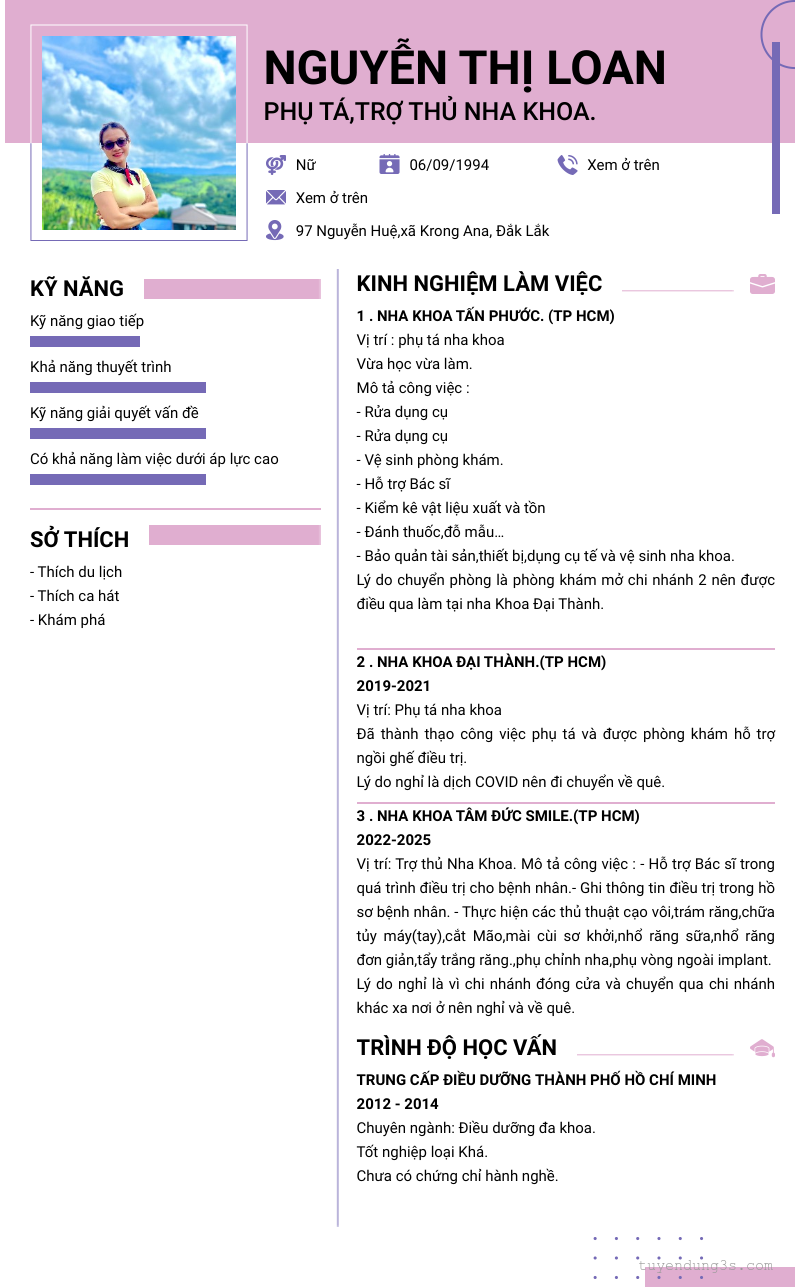 Mở xem thông tin đầy đủ ứng viên Nguyễn Thị Loan chỉ với 2 điểm. Ứng viên được cập nhật ngày 05/11/2025