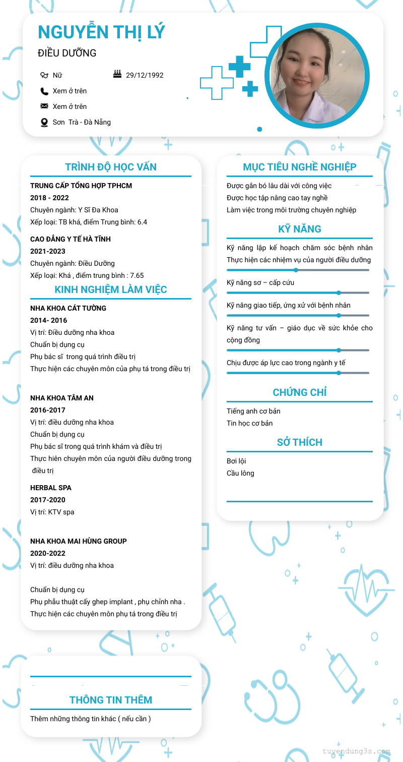 Mở xem thông tin đầy đủ ứng viên Nguyễn Thị Lý chỉ với 2 điểm. Ứng viên được cập nhật ngày 01/03/2024