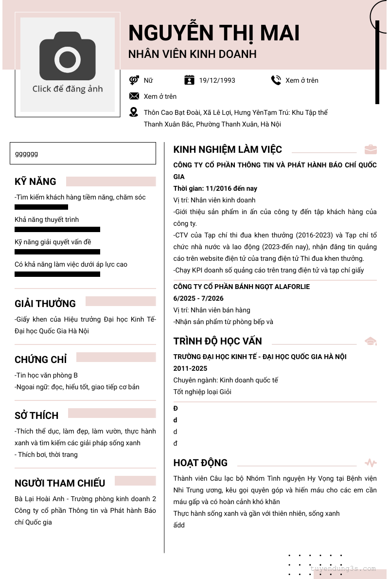 Mở xem thông tin đầy đủ ứng viên Nguyễn Thị Mai chỉ với 2 điểm. Ứng viên được cập nhật ngày 19/01/2026