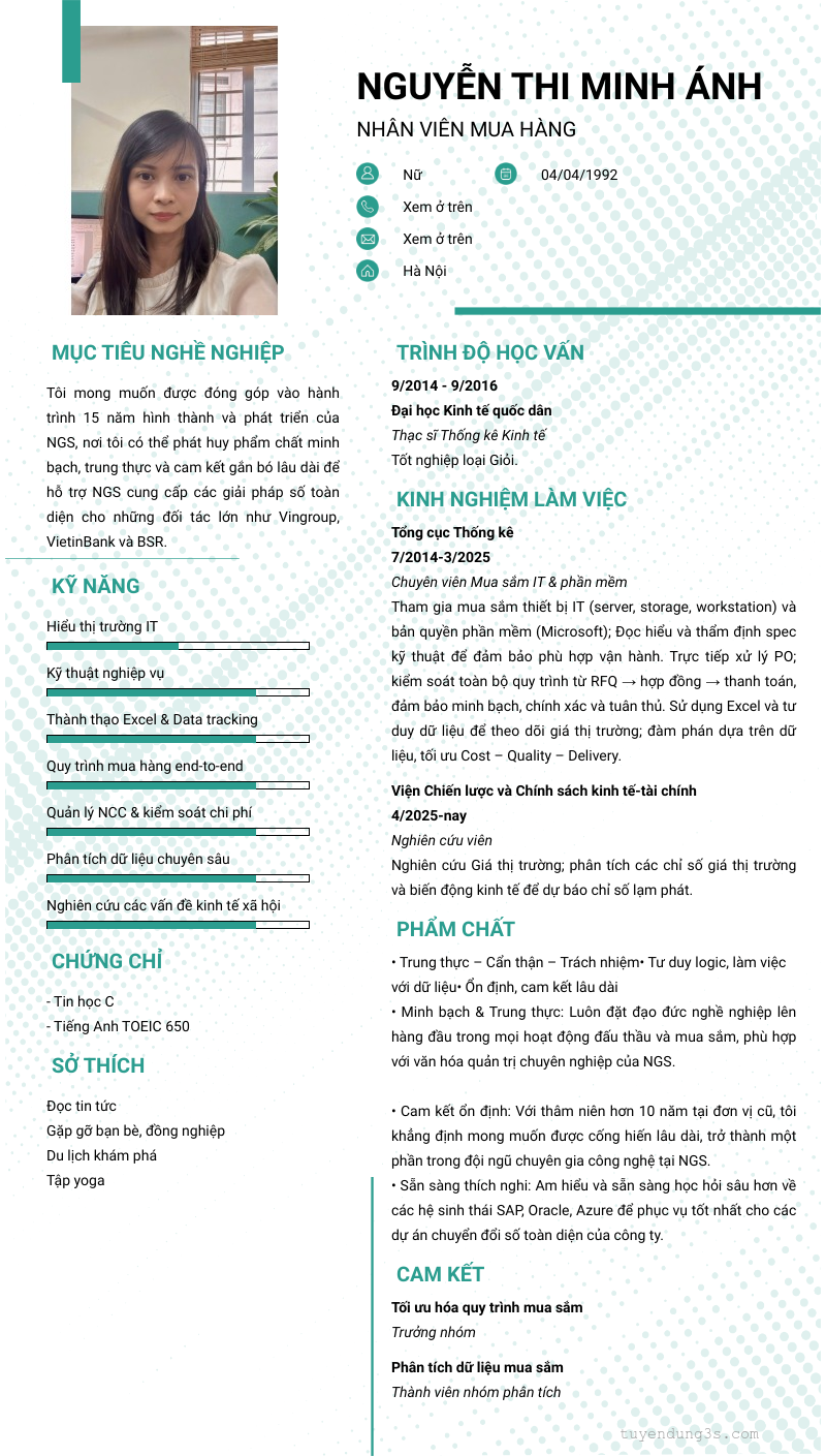 Mở xem thông tin đầy đủ ứng viên NGUYỄN THI MINH áNH chỉ với 2 điểm. Ứng viên được cập nhật ngày 23/03/2026