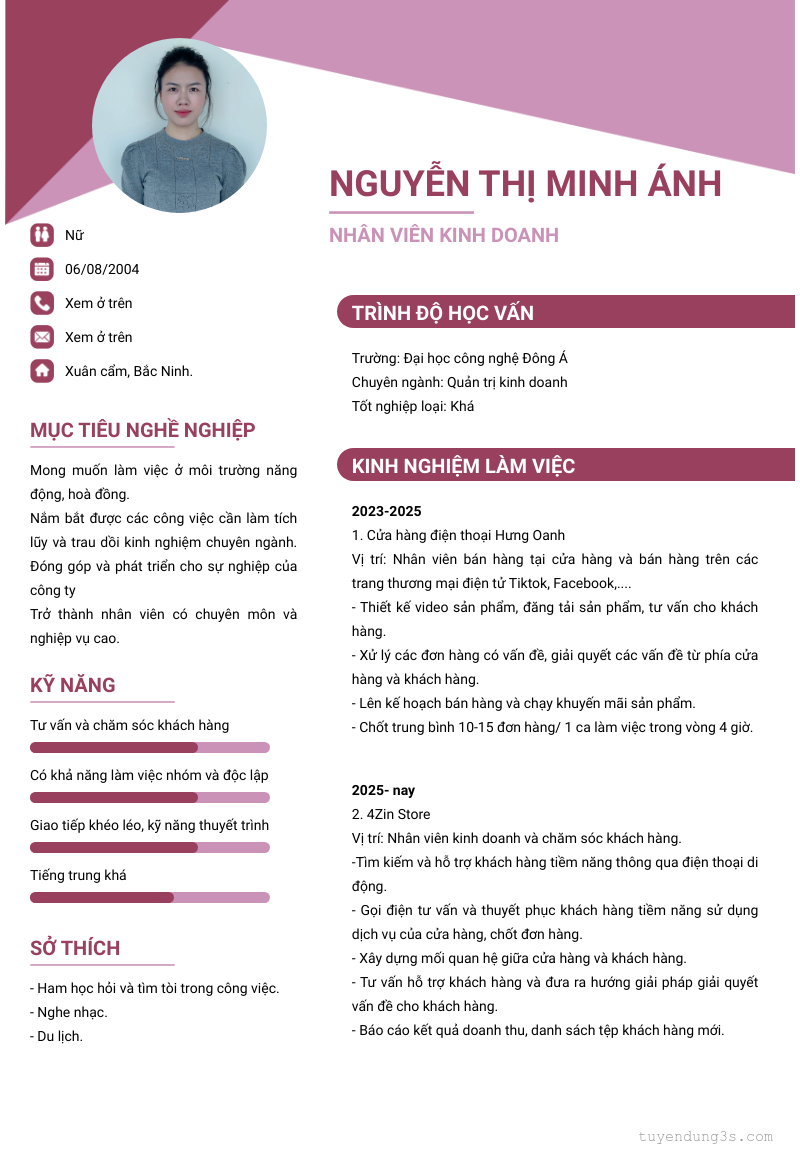 Vị trí: nhân viên kinh doanh