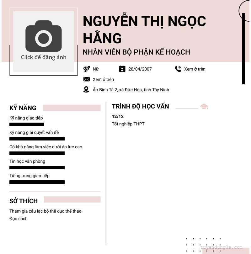 Mở xem thông tin đầy đủ ứng viên Nguyễn Thị Ngọc Hằng chỉ với 2 điểm. Ứng viên được cập nhật ngày 21/09/2025