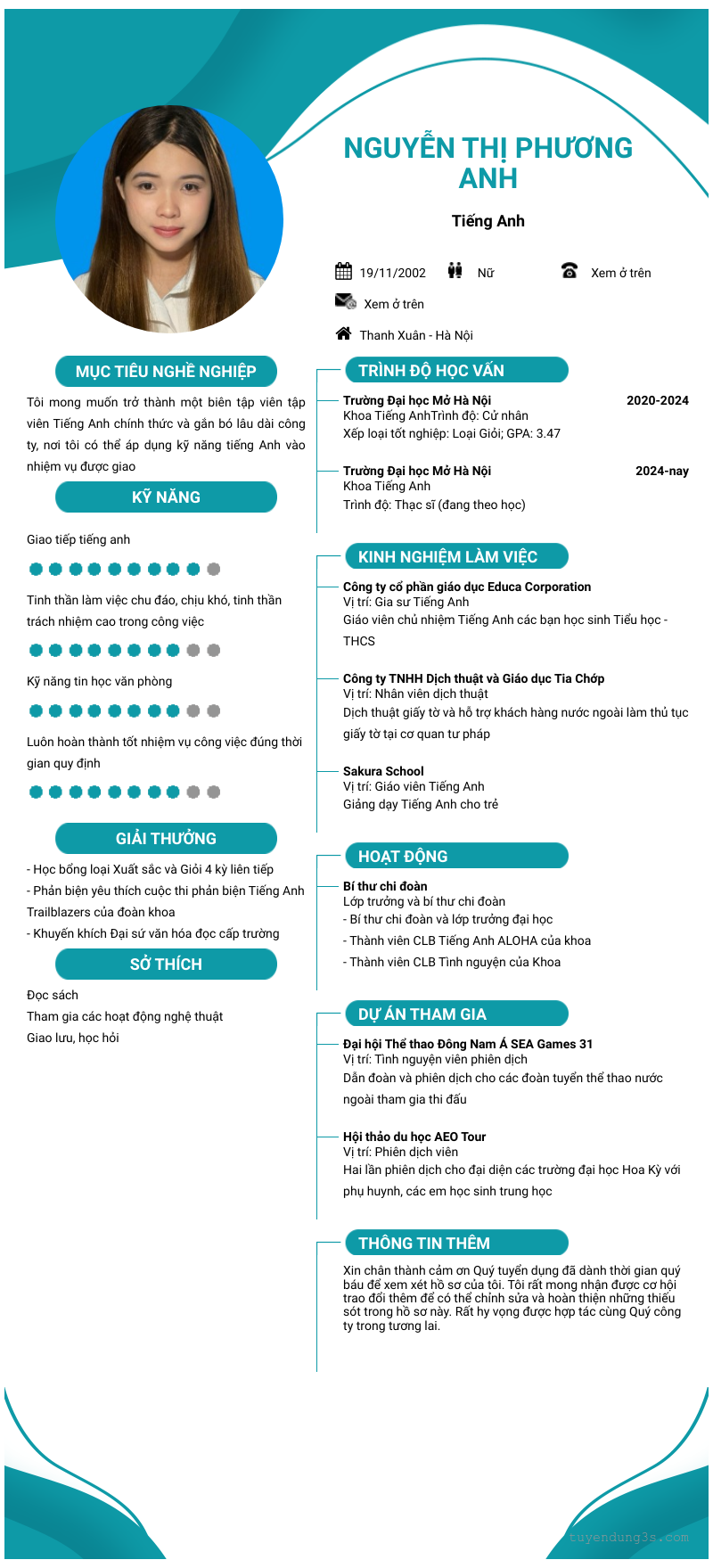 Mở xem thông tin đầy đủ ứng viên Nguyễn Thị Phương Anh chỉ với 2 điểm. Ứng viên được cập nhật ngày 25/12/2025