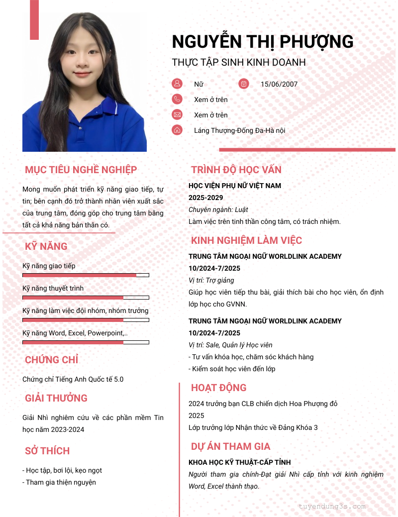 Mở xem thông tin đầy đủ ứng viên NGUYỄN THỊ PHƯỢNG chỉ với 2 điểm. Ứng viên được cập nhật ngày 11/10/2025