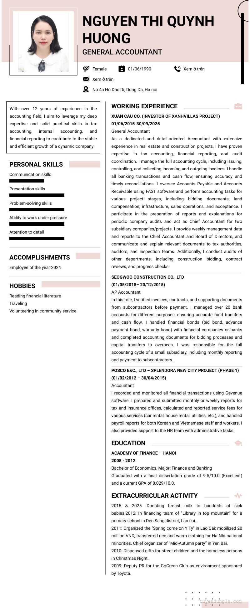 Mở xem thông tin đầy đủ ứng viên NGUYEN THI QUYNH HUONG chỉ với 2 điểm. Ứng viên được cập nhật ngày 17/09/2025