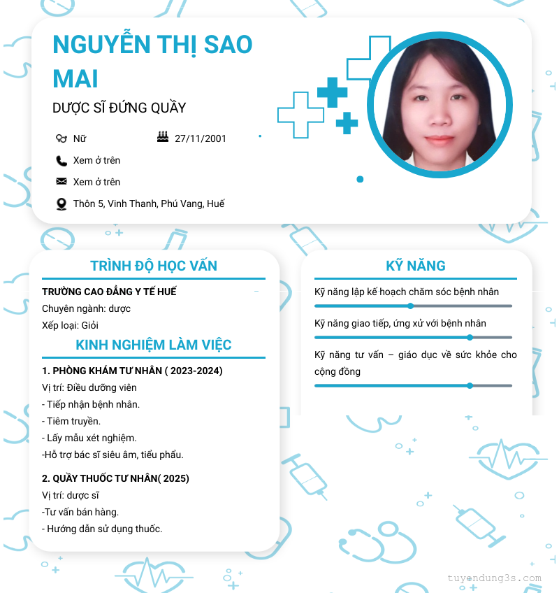 Mở xem thông tin đầy đủ ứng viên Nguyễn Thị Sao Mai chỉ với 2 điểm. Ứng viên được cập nhật ngày 04/10/2025