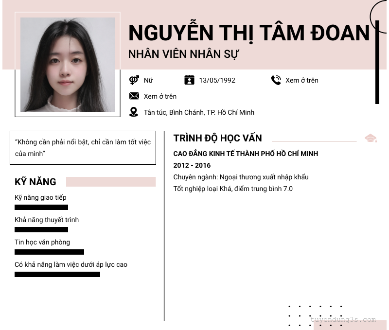 Nơi ở hiện tại: Tân túc, Bình Chánh, TP. Hồ Chí Minh