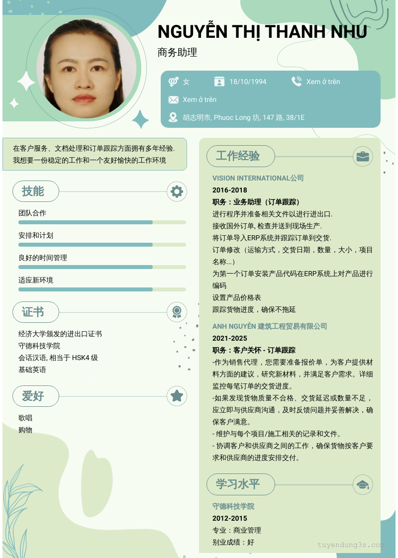 Mở xem thông tin đầy đủ ứng viên Nguyễn Thị Thanh Nhu chỉ với 2 điểm. Ứng viên được cập nhật ngày 03/02/2026