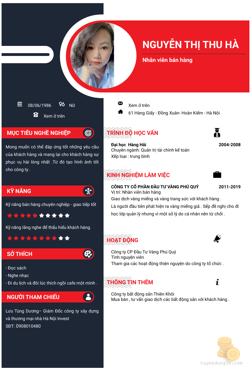 Mở xem thông tin đầy đủ ứng viên Nguyễn Thị Thu Hà chỉ với 2 điểm. Ứng viên được cập nhật ngày 30/05/2024