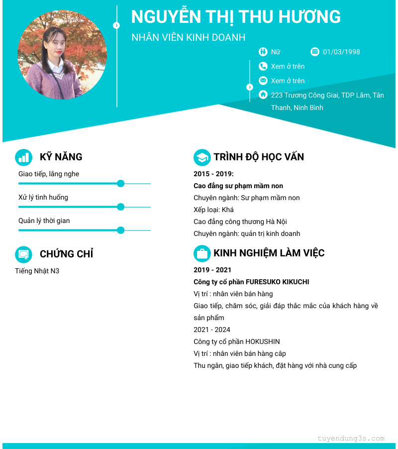 Mở xem thông tin đầy đủ ứng viên NGUYỄN Thị Thu Hương chỉ với 2 điểm. Ứng viên được cập nhật ngày 10/11/2025