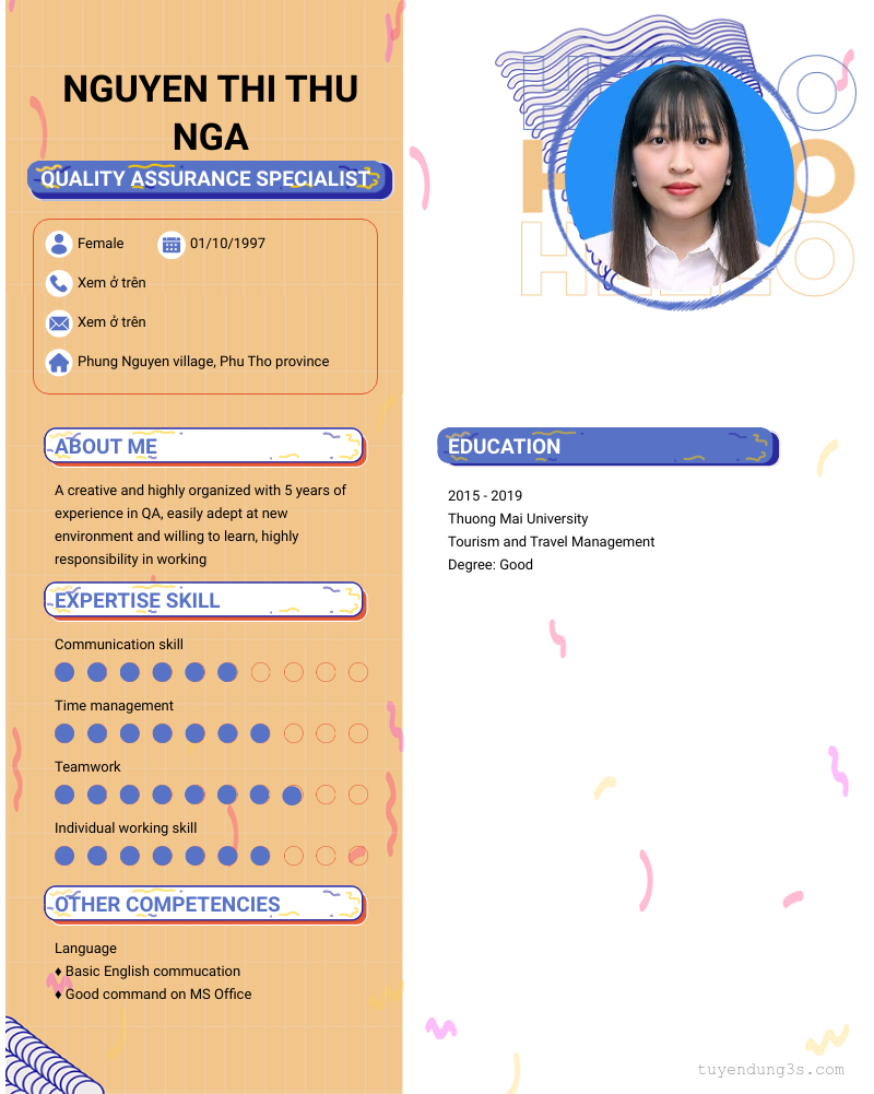 Mở xem thông tin đầy đủ ứng viên Nguyen Thi Thu Nga chỉ với 2 điểm. Ứng viên được cập nhật ngày 01/10/2025