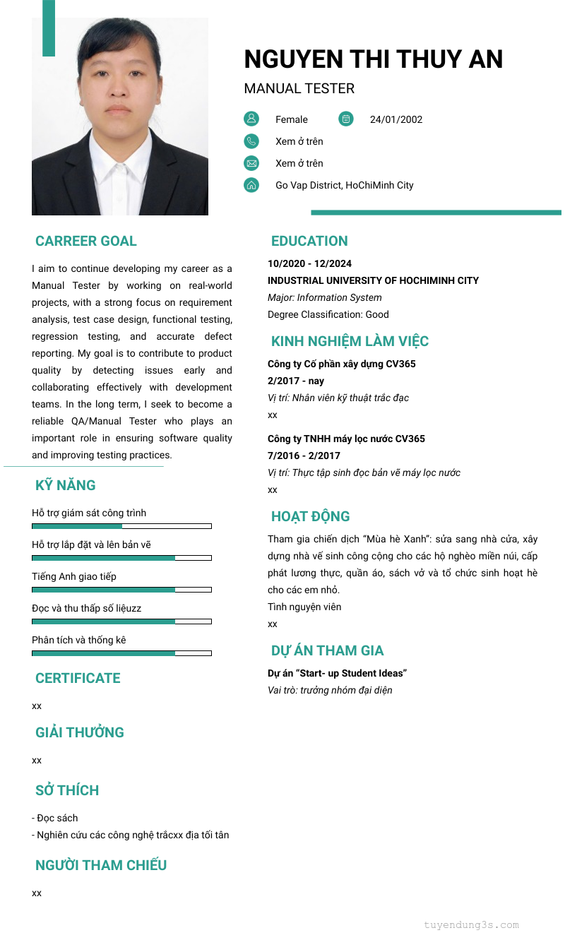 Mở xem thông tin đầy đủ ứng viên NGUYEN THI THUY AN chỉ với 2 điểm. Ứng viên được cập nhật ngày 17/01/2026