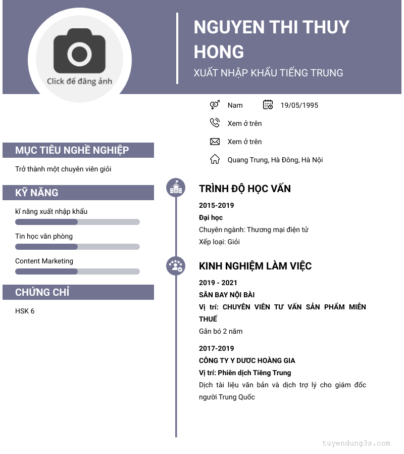 Mở xem thông tin đầy đủ ứng viên NGUYEN THI THUY HONG chỉ với 2 điểm. Ứng viên được cập nhật ngày 26/10/2025