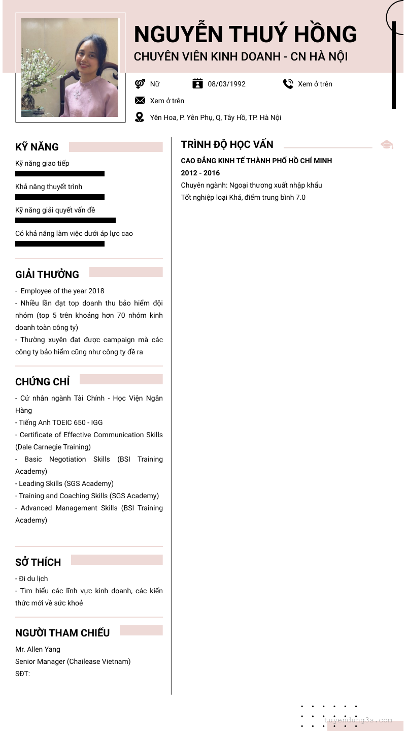 Mở xem thông tin đầy đủ ứng viên Nguyễn Thuý Hồng chỉ với 2 điểm. Ứng viên được cập nhật ngày 02/04/2026