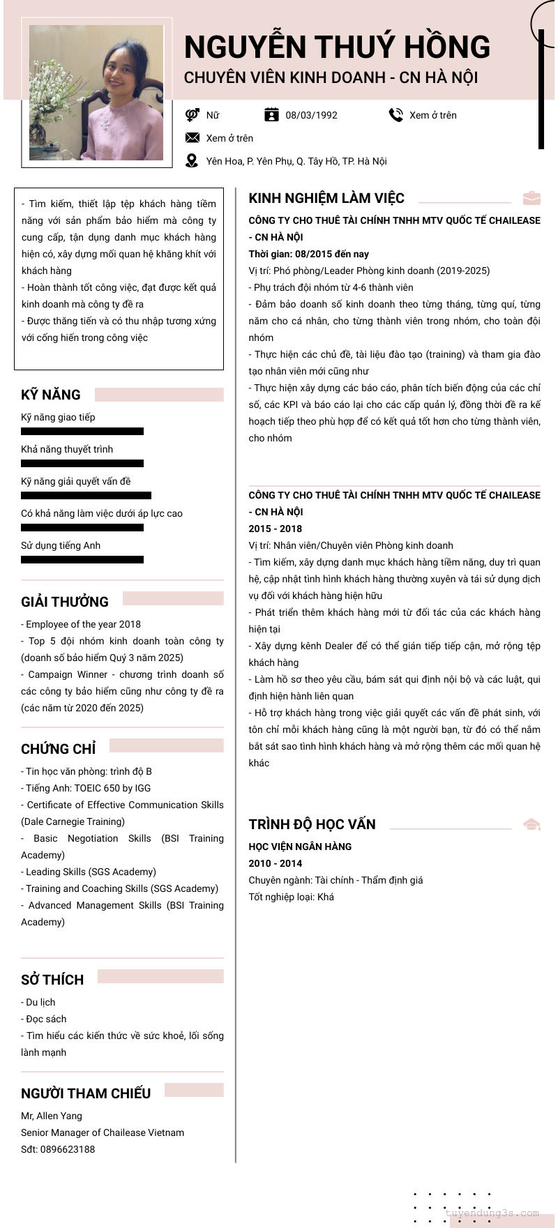 Mở xem thông tin đầy đủ ứng viên Nguyễn Thuý Hồng chỉ với 2 điểm. Ứng viên được cập nhật ngày 03/04/2026