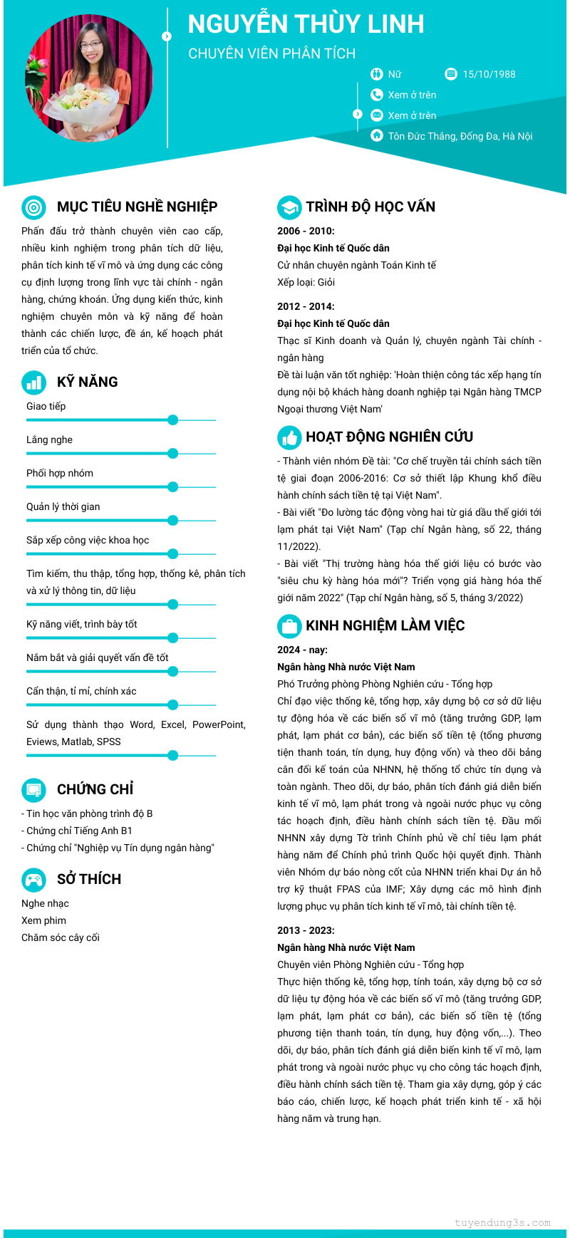 Mở xem thông tin đầy đủ ứng viên Nguyễn Thùy Linh chỉ với 2 điểm. Ứng viên được cập nhật ngày 03/11/2025