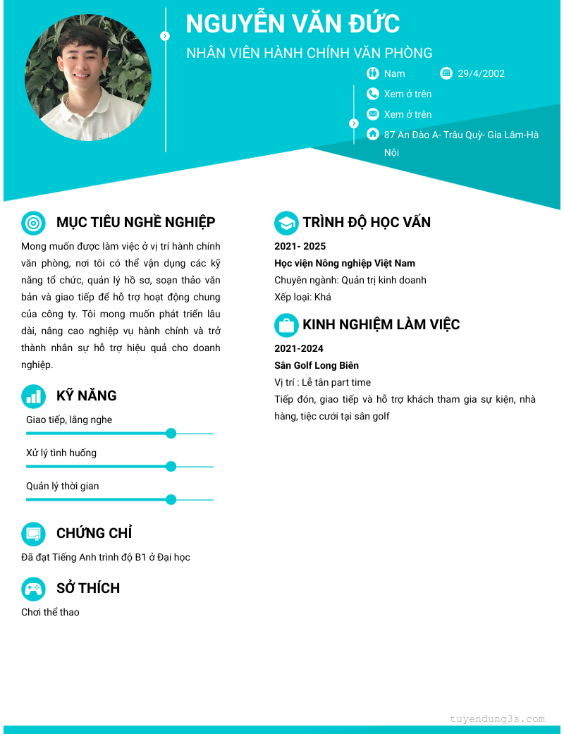 Nơi ở hiện tại: 87 An Đào A- Trâu Quỳ- Gia Lâm-Hà Nội