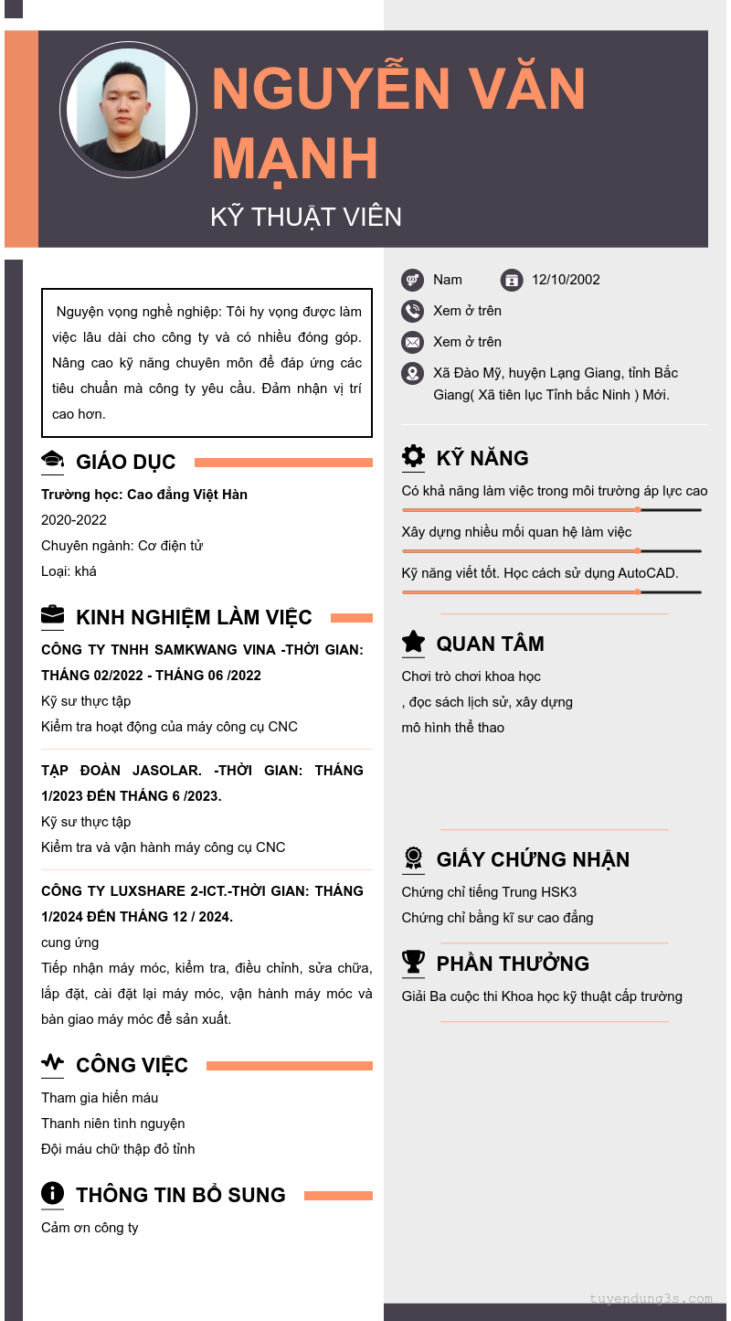 Mở xem thông tin đầy đủ ứng viên Nguyễn Văn Mạnh chỉ với 2 điểm. Ứng viên được cập nhật ngày 18/04/2025