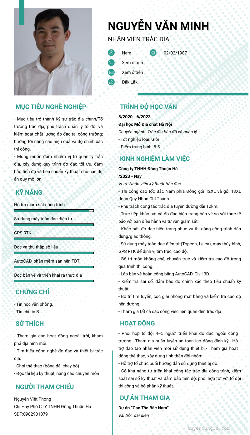 Vị trí: nhân viên trắc địa